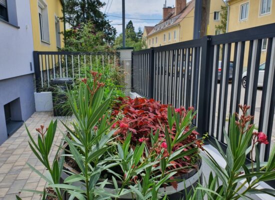 Ein vertikaler Zaun ist auch dann ideal, wenn das Haus nicht einstöckig ist, sondern mindestens ein Stockwerk hat.