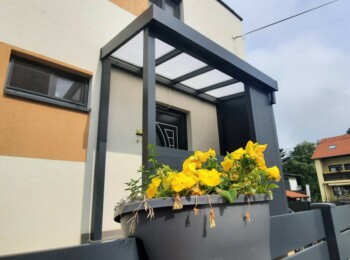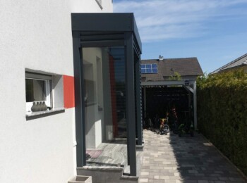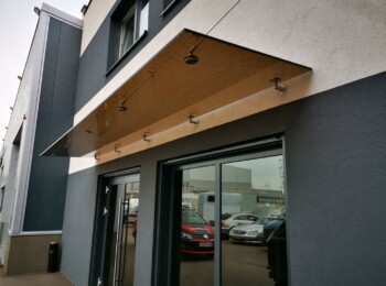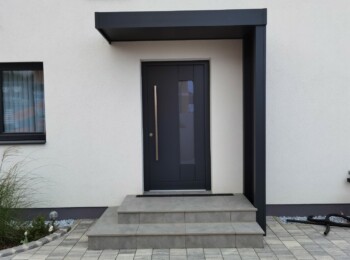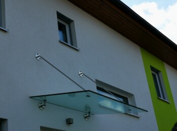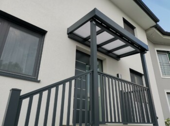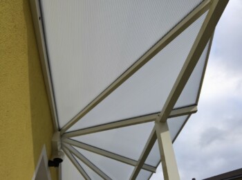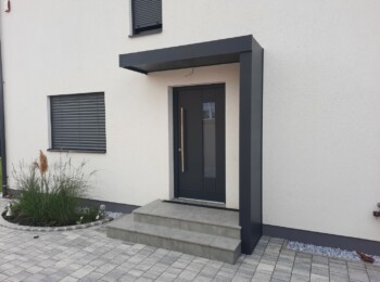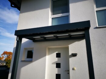 Die tragenden und konstruktiv sicher ausgelegten Aluminiumprofile aller Aluminium Vordächer bestehen aus korrosionsbeständigem und langlebigem Aluminium. Sie sind durch eine werksseitig versehene und bei hohen Temperaturen eingebrannte Pulverbeschichtung langlebig geschützt. Diese hochwertige Farbbeschichtung ist witterungsbeständig, auch bei Schlagregen und Schnee.